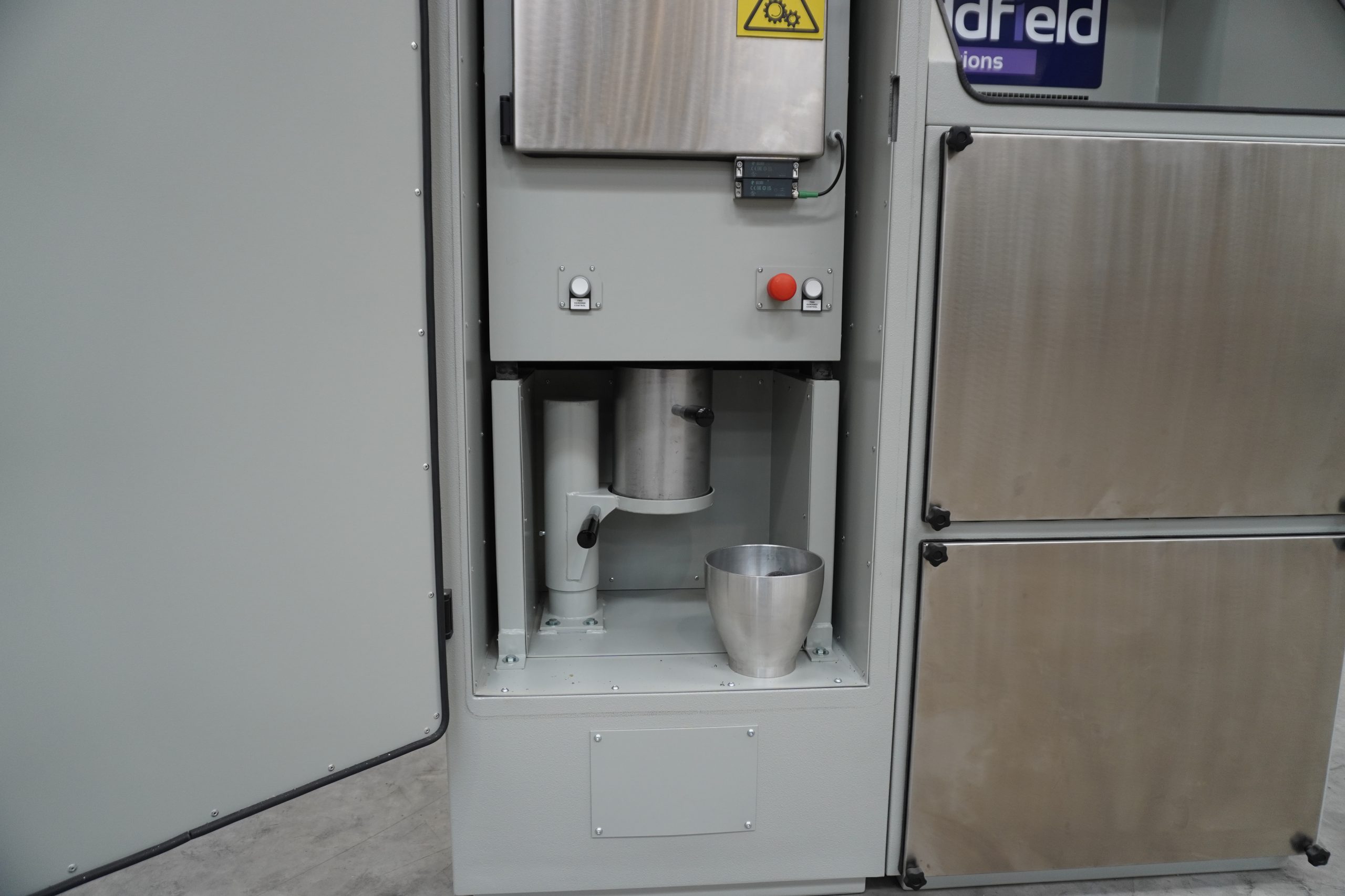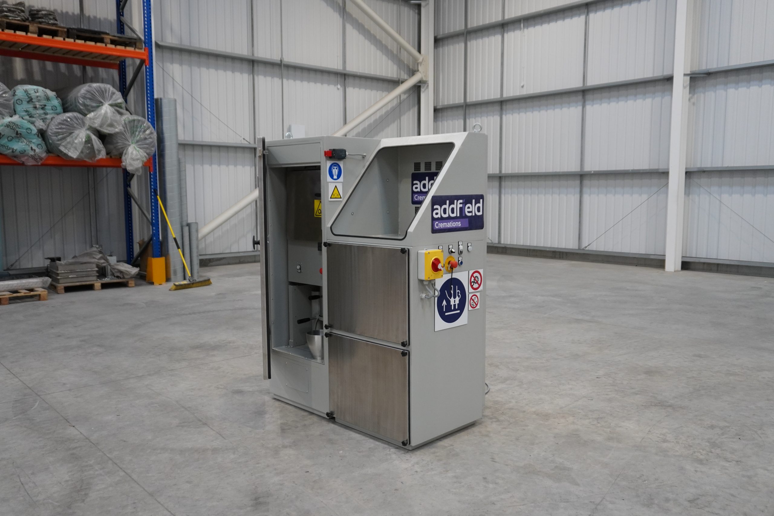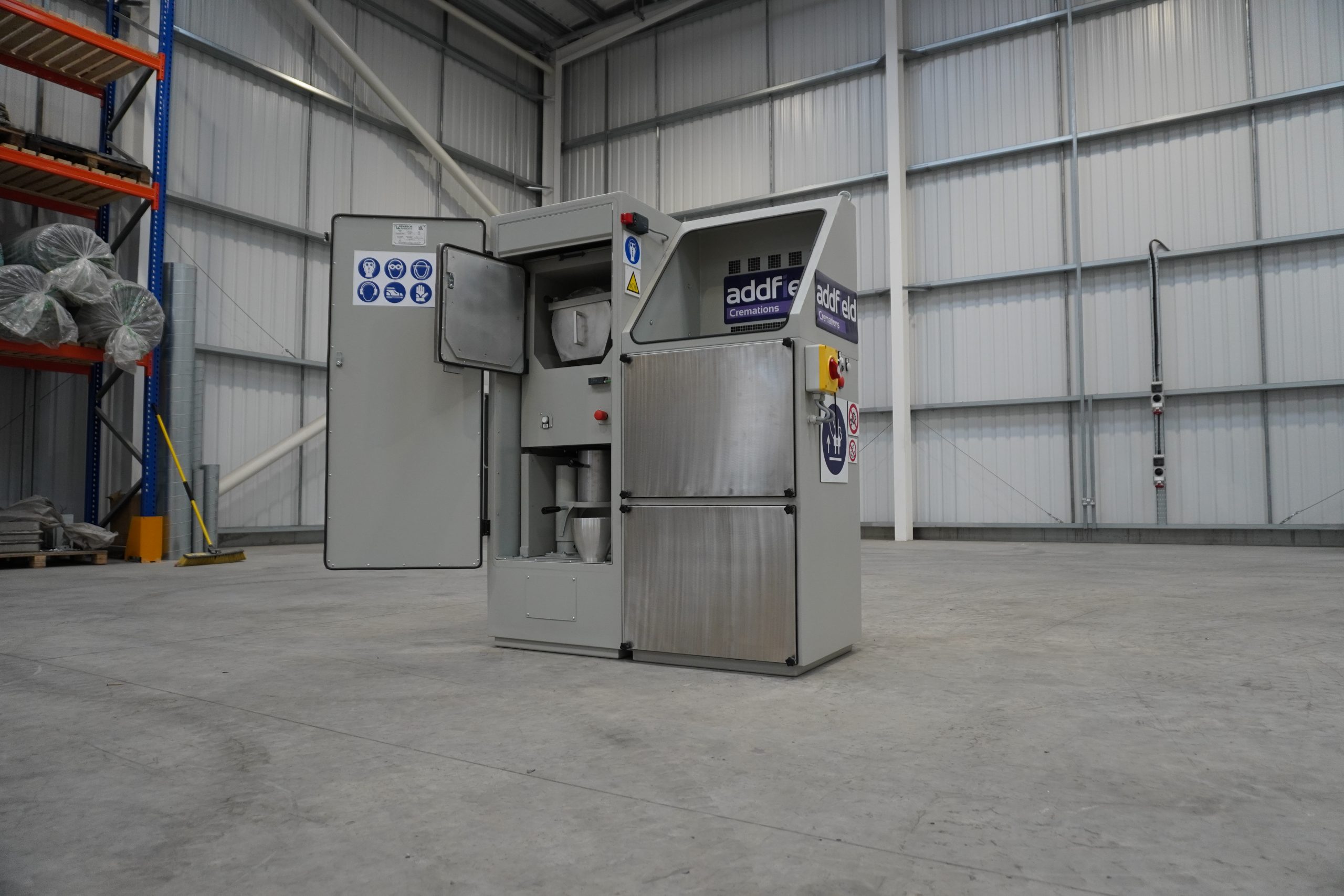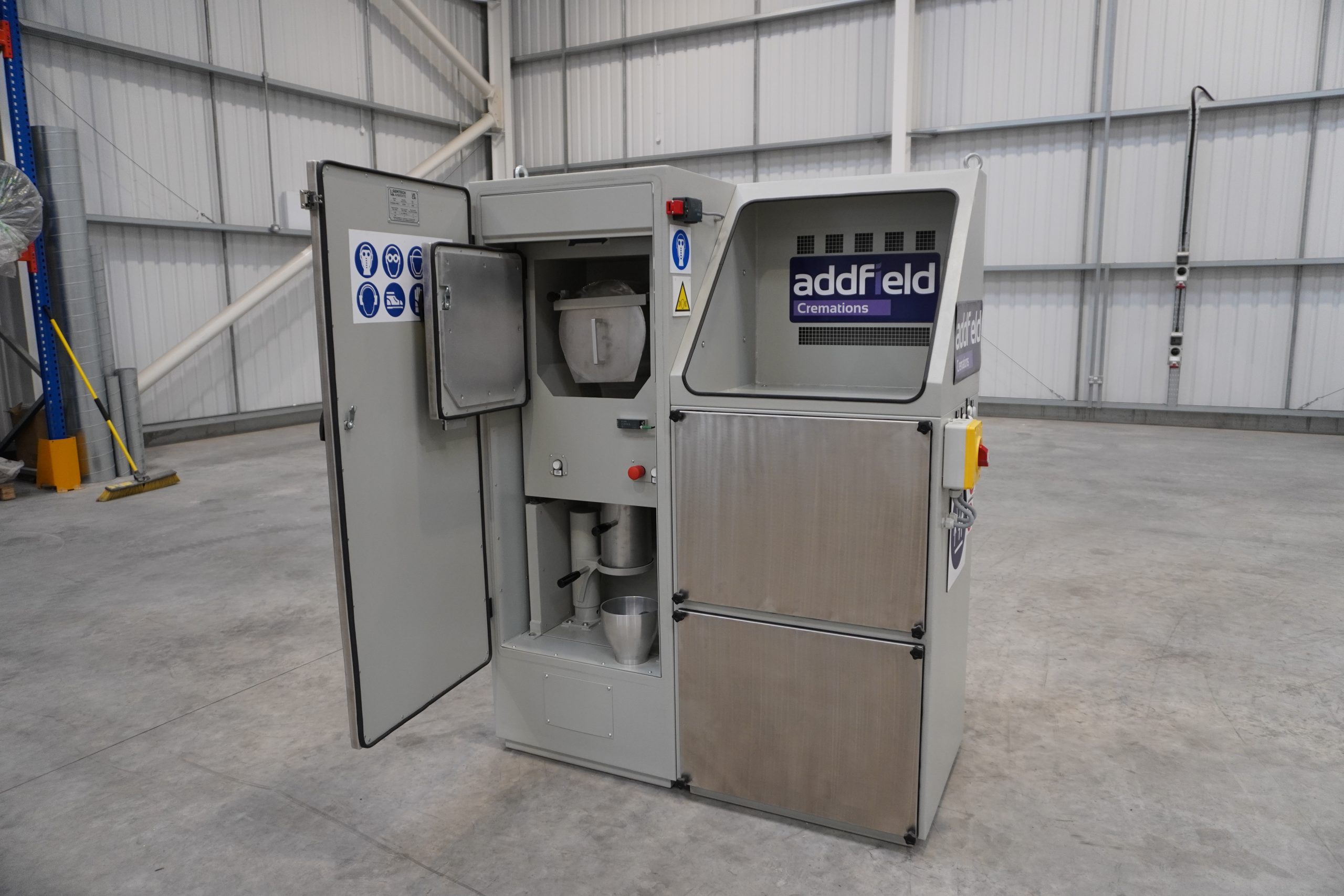 The Addfield Cremations Human Remains Ash Processor is a fully automatic cremation remains processor engineered to ensure the direct and hygienic transfer of cremated remains from the ash pan into the final urn without intermediate handling.